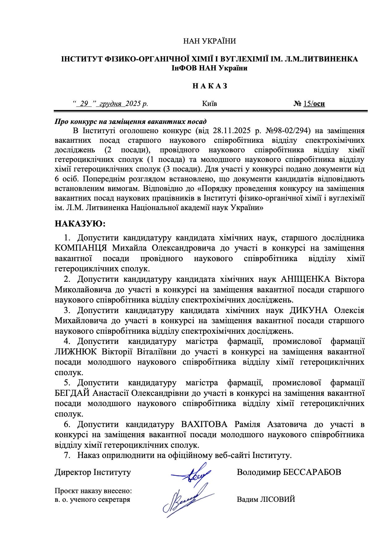 Про конкурсну комісію для відбору кандидатів на заміщення вакантних посад наукових працівників