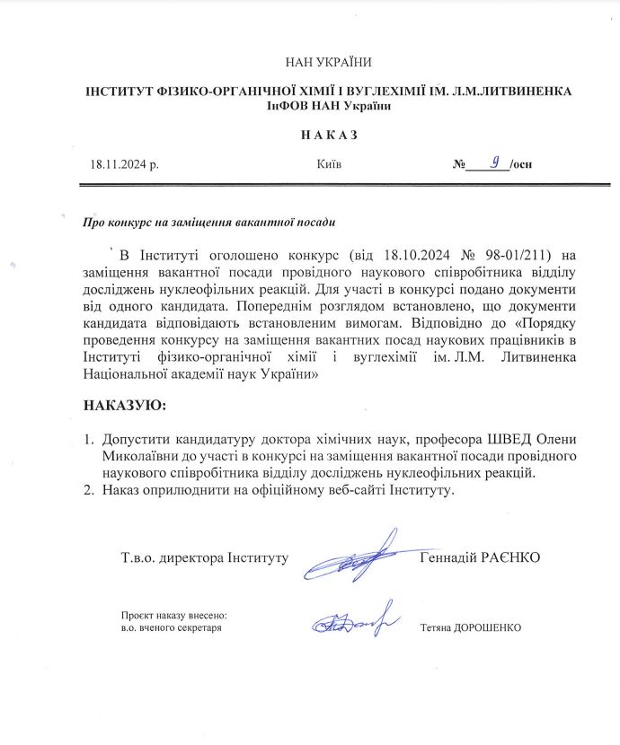 Конкурс на заміщення вакантної посади